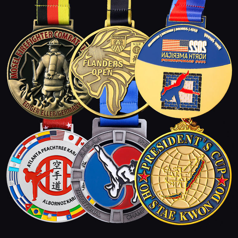 Medalhas de metal de liga de zinco personalizadas Medalhas desportivas 2D 3D Medalha de ouro Prêmio de prata