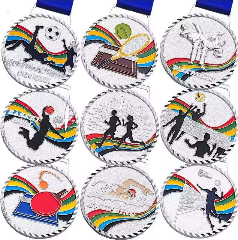 Medalhas atléticas de liga de zinco de alta qualidade para vencedores de futebol e competições esportivas. Designs personalizáveis disponíveis para vários eventos esportivos e brindes promocionais.